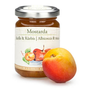 A fruit creation of apricots and pumpkin, refined with star anise. Excellent with medium-ripe full-cream cheeses and mountain cheeses. Apricots (35%), sugar, pumpkin (20%), onion, apple vinegar, star anise, chilli, spices.
