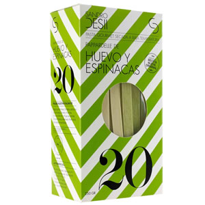 Semolina durum wheat flour, eggs 17% and spinach. Copper drawing and a slow drying process.