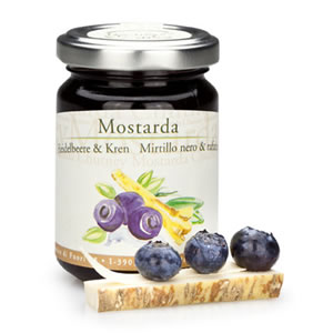 Aromatici mirtilli di bosco incontrano il rafano piccante. Perfetta per accompagnare carne affumicata o lessa, speck, piatti freddi e pesce affumicato. Mirtilli neri (60%), zucchero, rafano (cren 15%), succo di limone, spezie.