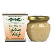 Fresh and smoked salmon, truffle. Excellent spread, on crackers and bread with butter. It can be used as a sauce fro dressing short pasta, gnocchi or for thickening risotto.