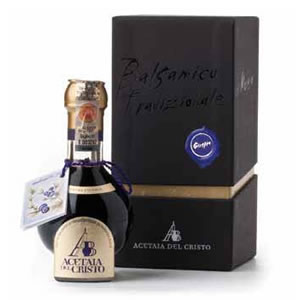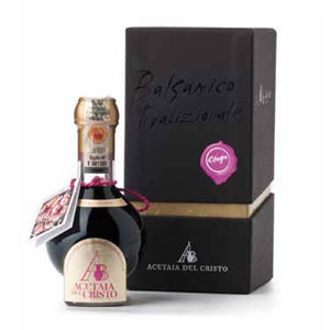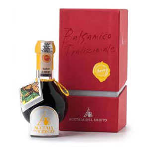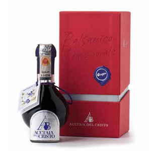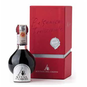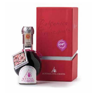 Acetaia del Cristo, l'estasi Balsamica, la misteriosa alchimia dei legni ultracentenari; serie limitate ed irripetibili. La più importante realtà mondiale dell'Aceto Balsamico Tradizionale di Modena (Diamante Nero, definito il "Migliore Aceto Balsamico Tradizionale di Modena DOP" al mondo) Il sigillo DOP e l'inconfondibile, caratteristica ampollina, unica per legge nel formato da 100 ml appositamente disegnata da "Giugiaro Design" garantiscono il pieno rispetto del disciplinare DOP nel corso dell'intera filiera produttiva ed un elevato standard qualitativo dei parametri organolettici, puntualmente valutati per ogni partita d'imbottigliamento, a totale garanzia del consumatore.