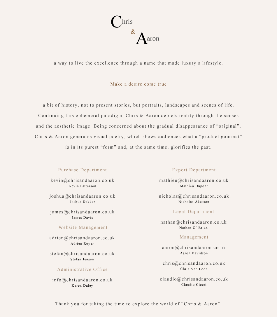 ©2017 All rights reserved Chris & Aaron .chrisandaaron.co.uk - VAT number 06276130967