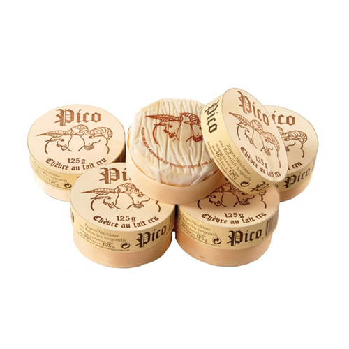 A unique goat cheese from the region of Perigord in France, Pico is creamy and dense, soft-ripened with mold. Typically compared to Camembert, Pico is sold young, it will develop as it ages, changing into a much more complex and pungent chevre. Very flavourful and very aromatic, with hazelnut notes.