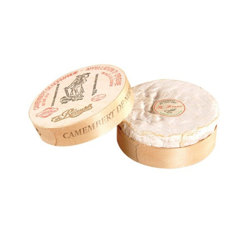 Camembert was created by Marie Harel in Camembert, Normandy, in 1791. It is a soft cheese with a surface mould, three quarters refined, as the Normans adore with a thin white stripe in the heart of it.
