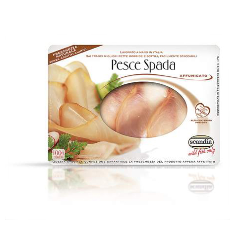 Sliced smoked swordfish.
