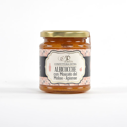 Apricot jam with Muscat wine of Molise, cane sugar and lemon juice. Handicraft product, dye-free and preservative-free.
