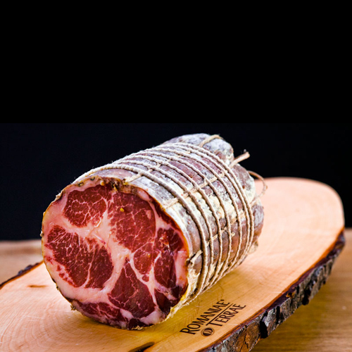 Coppa Romagnola is obtained from the neck meat of Italian pigs.