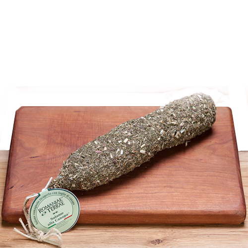 At about halfway through the seasoning, the cured meat is placed in fir wooden cases and covered with hemp leaves to allow ageing. Later on, the cured meat is brushed,  washed and covered with hemp leaves to extend its seasoning in a slow and optimal way. At the end of the ageing cycle, the cured meat will be soft, tasty with a slight herbal after-taste given by the hemp, which however does not invade the main flavours and aromas.
