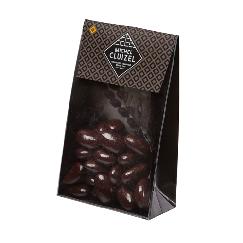 Almonds are roasted in carmelized sugar over an open fire in a copper cauldron. Then each piece is coated in the traditional manner with Michel Cluizel's fine dark chocolate (60% cocoa).