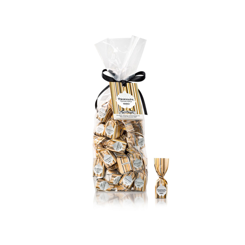 This delicious praline is a strictly hand made production: we select the best local row materials, such as the renowned I.G.P. Piemonte hazelnuts, also called "tonda e gentile delle Langhe" which is mixed with premium quality chocolate. Thanks to its little size, this crunchy praline is perfect to go with coffee.