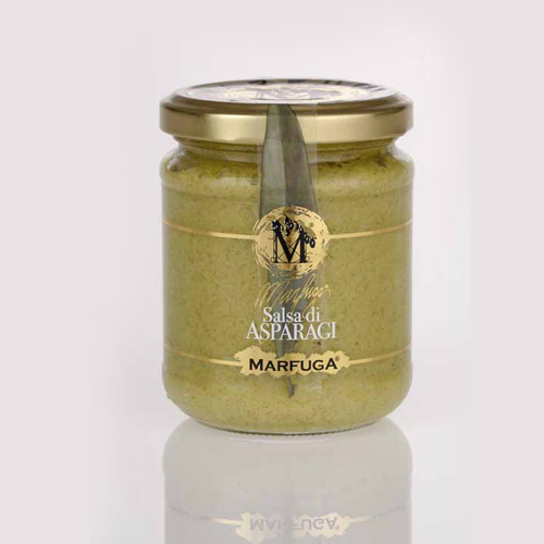 95% asparagus pulp, Marfuga Extra-virgin olive oil, salt, herbs and spices. No dyes or preservatives. Use as appetizer or pasta sauce.