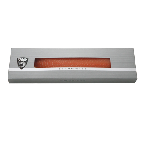 This specially selected salmon (Salmo salar) is lightly smoked in a traditional smoking oven.The exquisite, distinctive aroma unfolds when the side of salmon is cut into thin slices.
