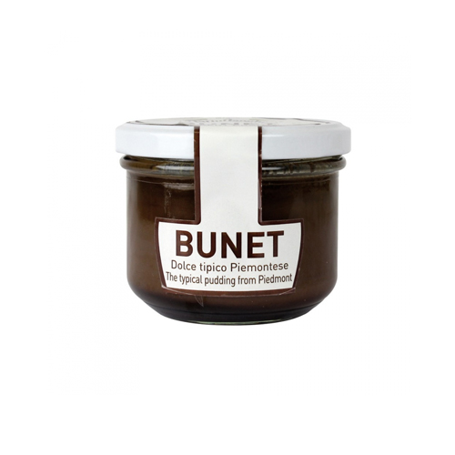 The Bunet is the typical pudding from Piedmont made with cocoa and amaretti cookies. The product is ready to serve and it is sterilized, so that you can store it at room temperature.