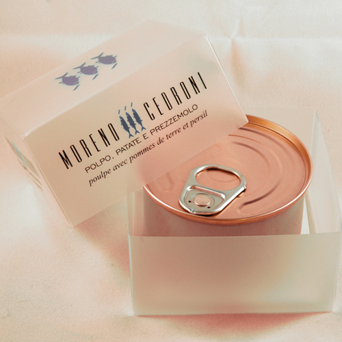 Octopus, potatoes, parsley, extra virgin olive oil, vinegar, salt. Cook and cool 100 gr. of penne (pasta), empty the contents of the can with half of the oil.