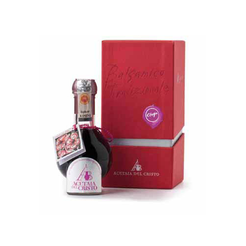 Delicious vinegar obtained after over 12 years of ageing in cherry vats. The characteristics determined exclusively by the soft wood of casks include delicacy, a fruity aroma and a special sweet note.