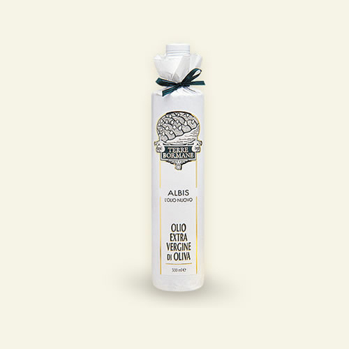 Like every year the harvest-time of the olives comes and the miracle of the birth of the fresh oil happens again. The olives-trees which blossom in May and June have produced the long-awaited new nectar, giving us, punctual and generous, the precious virgin olive oil. Already in the Ancient Rome the oils were used to be classified and the first of the New Year was called "Oleum ex albis ulivis", much appreciated because extremely palatable. The extra virgin olive oil ALBIS is the fresh must of Terre Bormane: palatable, fragrant and savoury, a real deliciousness.
