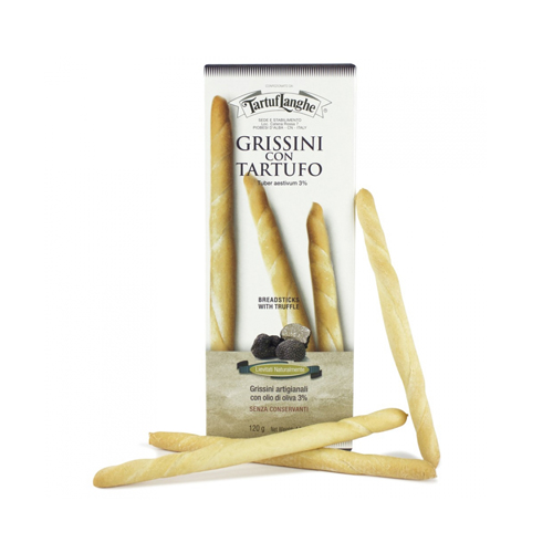 Wheat flour type "0", olive oil and black truffle. The breadstick with truffle is a delicious accompaniment for cheese, charcuteries, salami, salads, soups and antipasti in general.
