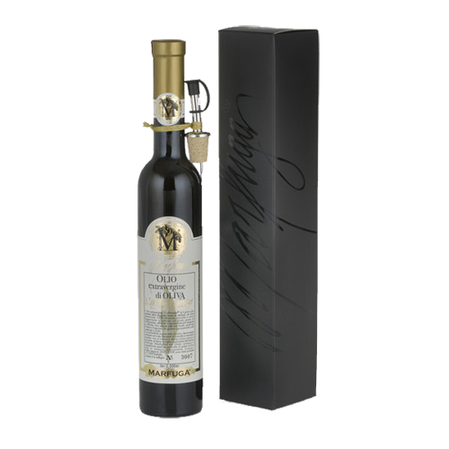 L'inconfondibile sapore netto di oliva, decisamente erbaceo con note dominanti di carciofo e mandorla acerba, con un'intesa e decisa caarica amara e piccante, ne fanno la miglior produzione del frantoio Marfuga.