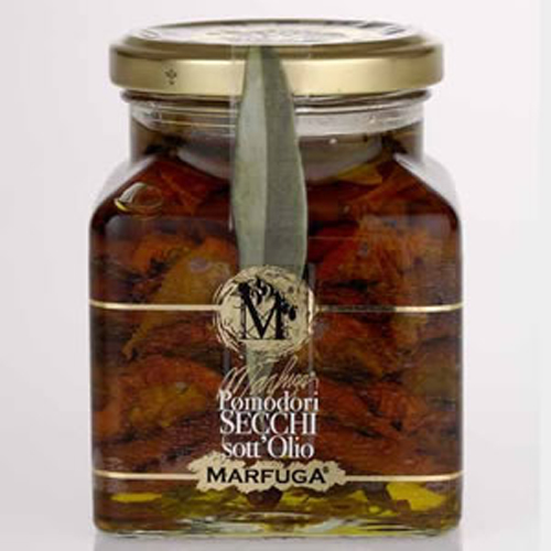 Dried tomatoes, extra-virgin olive oil, vinegar, salt, spices, capers. No dyes or preservatives.