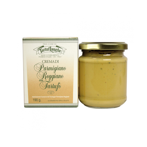 Cream, DOP Parmigiano Reggiano cheese 28%, black truffle, corn starch.These tasty sauce is ideal to dress risotto, short pasta, gnocchi, ravioli, tortelli. Excellent also as spread for tasty appetizers.