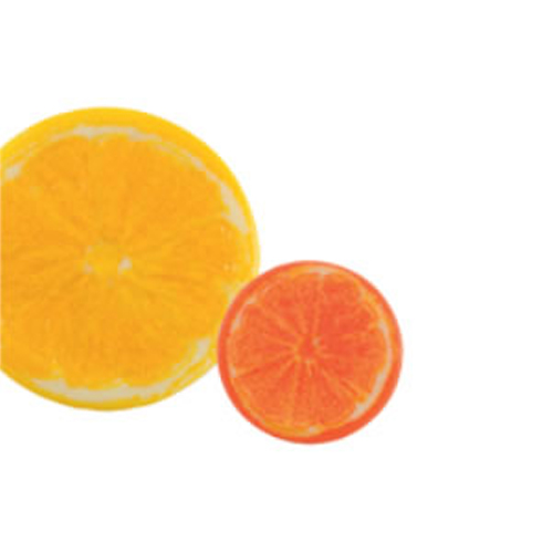 Fruit slices assorted , lemon and orange. One side decorated. Diameter mm. 45.