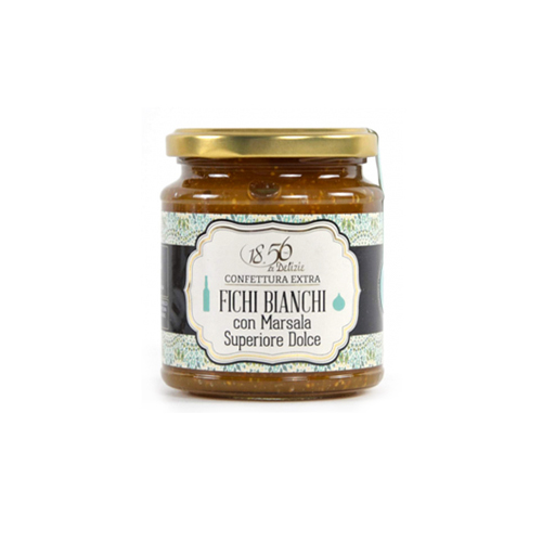 Confettura extra di fichi bianchi con Marsala Superiore Dolce, zucchero di canna. Prodotto artigianale senza coloranti o conservanti.
