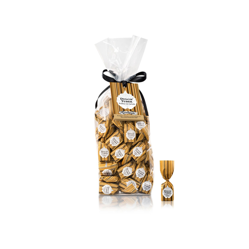 Morbida pralina di puro cioccolato bianco , nocciola tostata e pasta di nocciola Piemonte I.G.P.(36%), impreziosita con il celebre tartufo nero (1,5%). Un connubio unico dal sapore equilibrato.