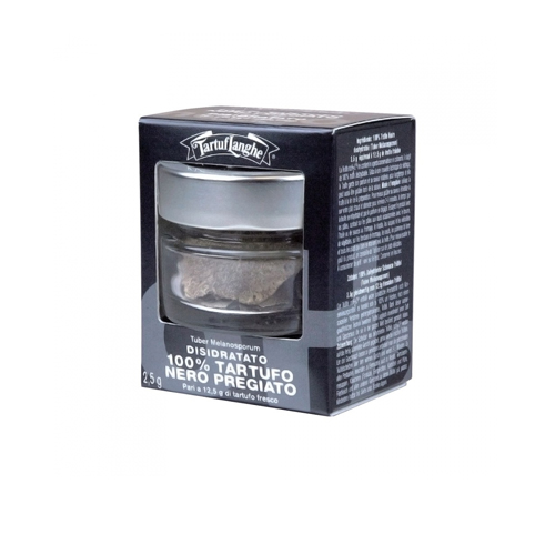 Tartufo nero pregiato ottenuto da gr. 12,5 di tartufo fresco. Le fettine vanno servite a fine preparazione, esattamente come il tartufo fresco. Per gustarne meglio il sapore, sbricciolatele sul piatto caldo e attendere 2/3 minuti. Abbinamento ideale: pasta all'uovo, vellutate di verdure, patate e puré, filetti di carne.