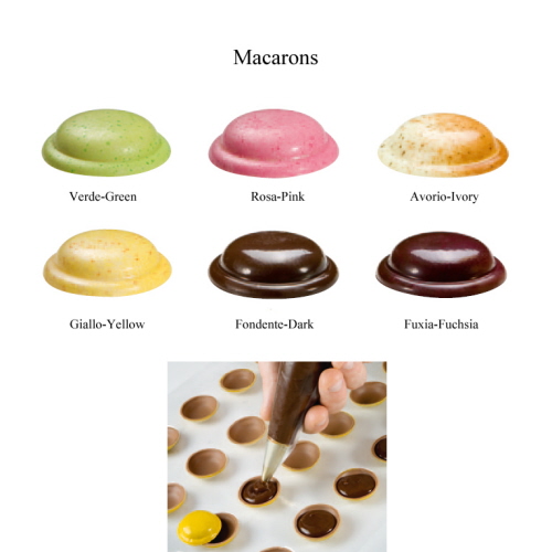 Corpi vuoti di cioccolato da riempire e lavorare. Cioccolato fondente 72% (color fondente, fuxia) o al latte 45% (color verde, rosa, avorio, giallo). Ideali da guarnire con pralinato, cioccolato o altri ripieni morbidi. Pezzi 200/conf.